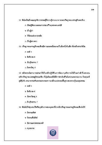 12. ข้อใดเป็นลักษณะบุคลิกภาพของผู้มีความรู้ตามแนวทางของปรัชญาของเศรษฐกิจพอเพียง