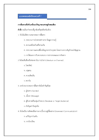 แบบทดสอบหลังเรียนหน่วยที่ 7
