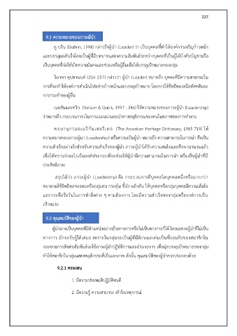 ดู บริน (DuBrin, 1998) กล่าวถึงผู้น า (Leader) ว่า เป็นบุคคลที่ท าให้องค์การเจริญก้าวหน้า