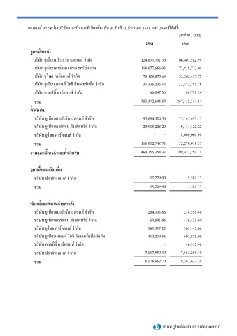 ยอดคงค้ำงระหว่ำงบริษัท และกิจกำรที่เกี่ยวข้องกัน ณ วันที่ 31 ธันวำคม 2561 และ 2560 มีดังนี้: