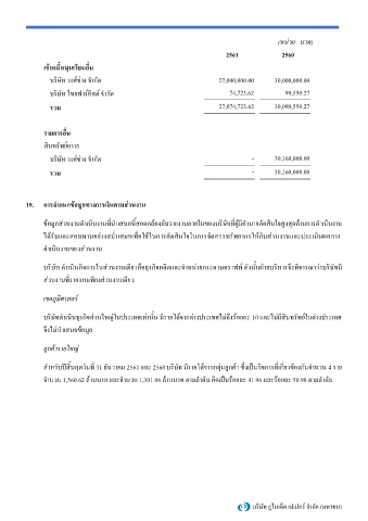 19. กำรจ ำแนกข้อมูลทำงกำรเงินตำมส่วนงำน