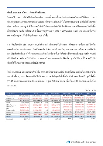 งบก ำไรขำดทุน ปี 2561 ปี 2560 % ปี : ปี ไตรมำส 4/2561 ไตรมำส 3/2561 ไตรมำส 2/2561 ไตรมำส 1/2561