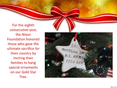 For the eighth consecutive year, the Nixon Foundation honored those who gave the ultimate sacrifice for their country by inviting their families to hang special ornaments on our Gold Star Tree.
