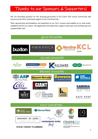 businesses for their continued support of our Christmas Fair.