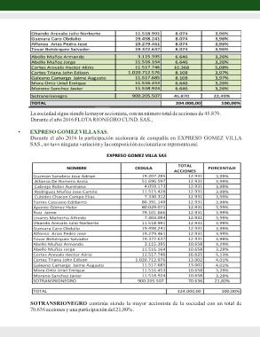 Durante el año 2016 la participación accionaria de compañía en EXPRESO GOMEZ VILLA