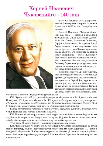 К.И. Чуковский – балдардыҥ совет литературазыныҥ тӧзӧӧчилериниҥ бирӱзи. Кажы