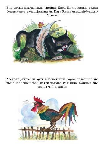 Бир катап азатпайдыҥ энезине Кара Киске калып келди. Пӧтӱк ӧйинеҥ ӧткӱре тыҥ кыйгырды: !Кӱкӱрӱкӱ-ӱ-ӱ-ӱ» Оноҥ