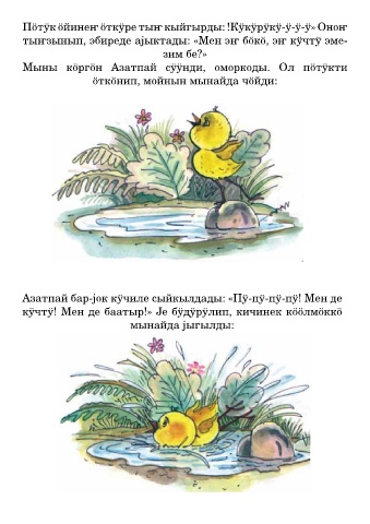 кӱчтӱ! Мен де баатыр!» Је бӱдӱрӱлип, кичинек кӧӧлмӧккӧ