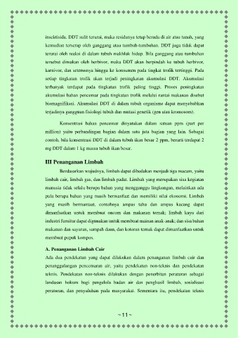 insektisida. DDT sulit terurai, maka residunya tetap berada di air atau tanah, yang