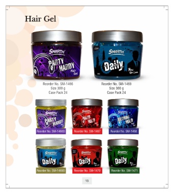 Hair Gel Hair Gel Hair Gel Reorder No. SM-1466 Reorder No. SM-1469 Size 300 g Size 300 g Case Pack 24 Case Pack 24 Reorder No. SM-1466D Reorder No. SM-1467 Reorder No. SM-1468 Reorder No. SM-1469D Reorder No. SM-1470 Reorder No. SM-1471 10