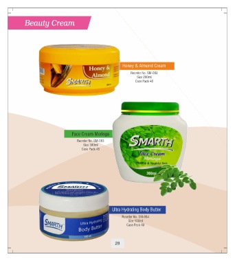Beauty CreamBeauty CreamBeauty Cream Honey & Almond Cream Reorder No. SM-082 Size 200ml Case Pack 48 Face Cream Moringa Reorder No. SM-083 Size 300ml Case Pack 48 Ultra Hydrating Body Butter Reorder No. SM-084 Size 100ml Case Pack 48 28
