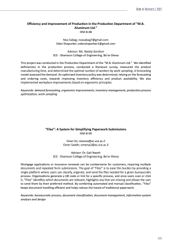 Efficiency and Improvement of Production in the Production Department of “M.B. Aluminum Ltd.”