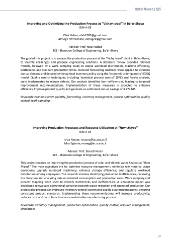 Book of Abstracts | 2025 Improving and Optimizing the Production Process at “Vishay Israel” in Be’er-Sheva