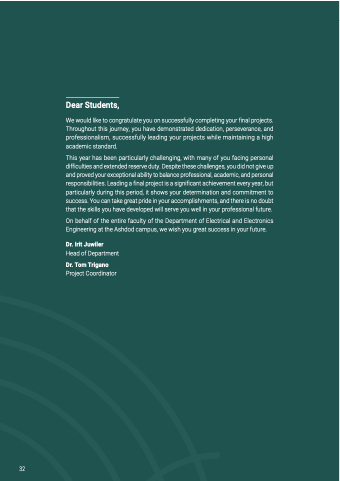 On behalf of the entire faculty of the Department of Electrical and Electronics Engineering at the Ashdod campus, we wish you great success in your future.