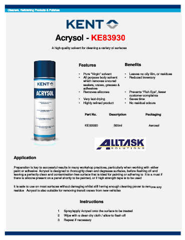 paint or adhesive. Acrysol is designed to thoroughly clean and degrease surfaces, before flashing off and