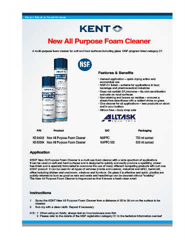 KENT New All Purpose Foam Cleaner is a multi use foam cleaner with a wide spectrum of applications.