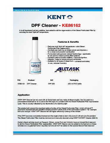to aid the Diesel Particulate Filter regeneration. KENT DPF Cleaner can be added to the fuel tank on those