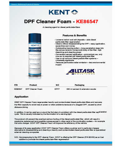 N.B.: Accompanying to the DPF cleaner Foam, KENT is offering the DPF Cleaner (P/N 86162) as an fuel