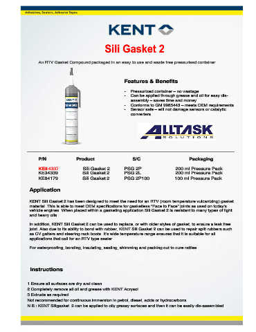 KENT Sili Gasket 2 has been designed to meet the need for an RTV (room temperature vulcanizing) gasket