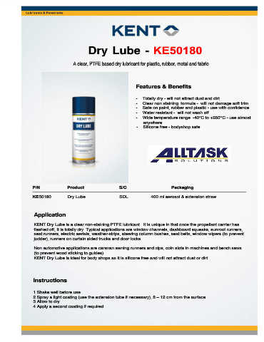 KENT Dry Lube is ideal for body shops as it is silicone free and will not attract dust or dirt.