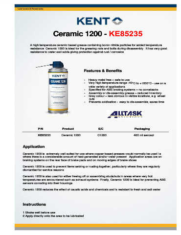 resistance. Ceramic 1200 is ideal for the greasing nuts and bolts during disassembly. It has very good