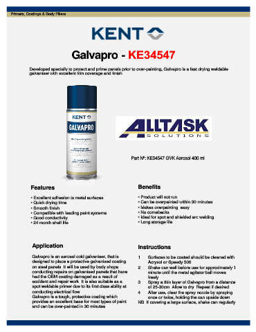 Developed specially to protect and prime panels prior to over-painting, Galvapro is a fast drying weldable