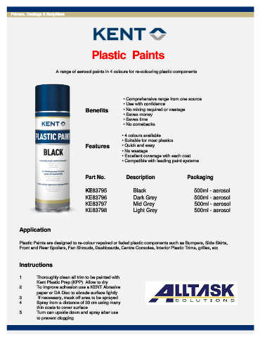 Plastic Paints are designed to re-colour repaired or faded plastic components such as Bumpers, Side Skirts,