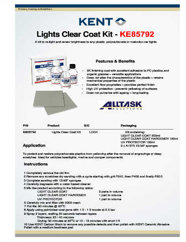 KE85792 Lights Clear Coat Kit LCCK Kit containing: