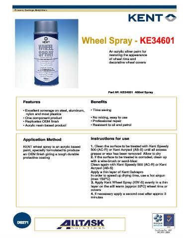 KENT wheel spray is an acrylic based 1. Clean the surface to be treated with Kent Speedy