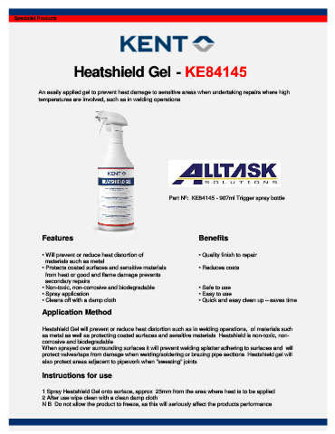 Heatshield Gel will prevent or reduce heat distortion such as in welding operations, of materials such