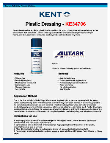 new” uniform dark colour film. Plastic Dressing is suitable for all exterior plastic; Bumpers, bumper