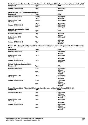 Heptane (CAS 142-82-5) TWA 2085 mg/m3