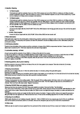 already contained in the tank or fill the new fuel filter with the VB35 cleaner. Drive the vehicle as usual. Further treatment
