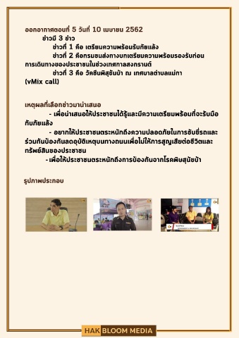 ออกอากาศตอนที่ 5 วันที่ 10 เมษายน 2562