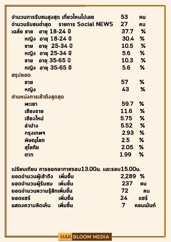 ยอดจำนวนผูรับชม เพิ่มขึ้น 237 คน