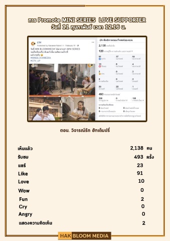 การ Promote MINI SERIES LOVE SUPPORTER วันที่ 11 กุมภาพันธ เวลา 12.16 น. ตอน. วิจารณรัก ฮักเต็มปรี่ 2,138 คน 493 ครั้ง 23 91 10 0 2 0 0 แสดงความคิดเห็น 2