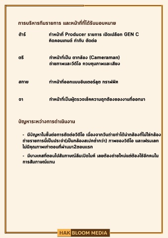 การบริหารทีมรายการ และหนาที่ที่ไดรับมอบหมาย