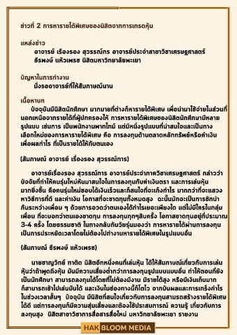 ขาวที่ 2 การหารายไดพิเศษของนิสิตจากการเทรดหุน