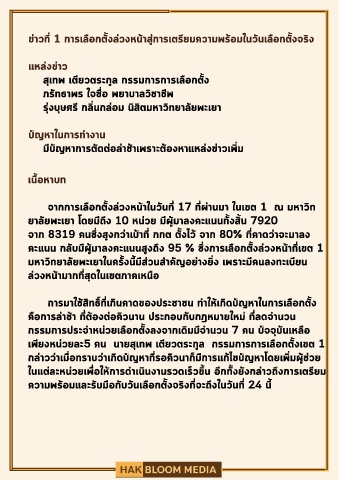 ขาวที่ 1 การเลือกตั้งลวงหนาสูการเตรียมความพรอมในวันเลือกตั้งจริง