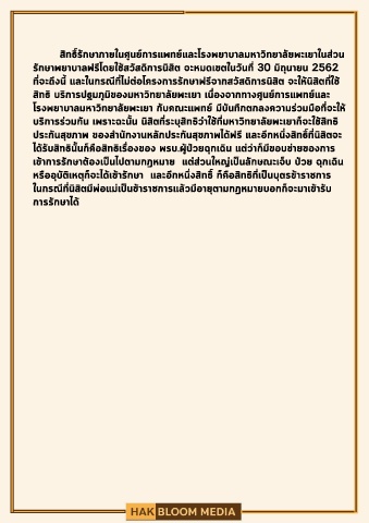 รักษาพยาบาลฟรีโดยใชสวัสดิการนิสิต จะหมดเขตในวันที่ 30 มิถุนายน 2562