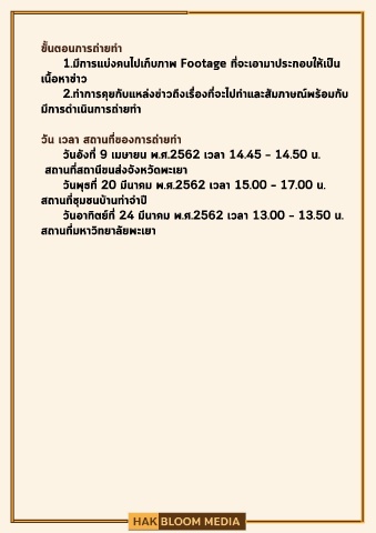 1.มีการแบงคนไปเก็บภาพ Footage ที่จะเอามาประกอบใหเปน