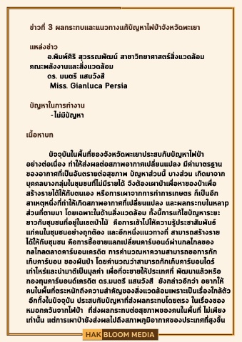 ขาวที่ 3 ผลกระทบและแนวทางแกปญหาไฟปาจังหวัดพะเยา