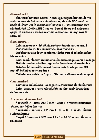 ครั้งที่หาในวันที่ 10/04/2562 รายการ Social News จะตองมียอดคน