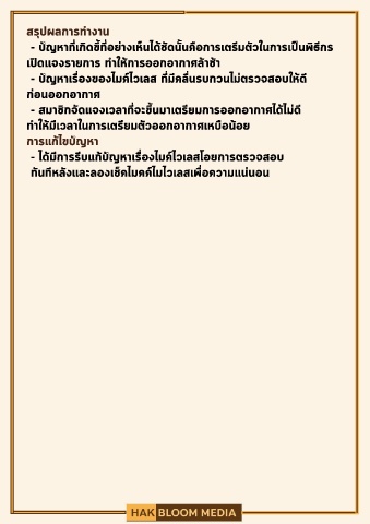 - สมาชิกจัดแจงเวลาที่จะขึ้นมาเตรียมการออกอากาศไดไมดี