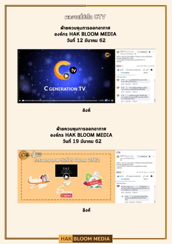 ผลงานที่ทำใน CTV ฝายควบคุมการออกอากาศ องคกร HAK BLOOM MEDIA วันที่ 12 มีนาคม 62 ลิงค ฝายควบคุมการออกอากาศ องคกร HAK BLOOM MEDIA วันที่ 19 มีนาคม 62 ลิงค