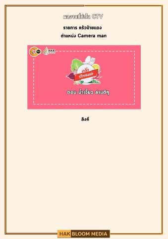 ผลงานที่ทำใน CTV รายการ ครัวปายแดง ตำแหนง Camera man ลิงค