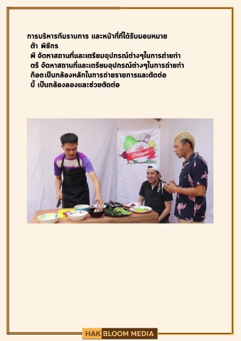การบริหารทีมราบการ และหนาที่ที่ไดรับมอบหมาย ตา พิธีกร พี จัดหาสถานที่และเตรียมอุปกรณตางๆในการถายทำ ตรี จัดหาสถานที่และเตรียมอุปกรณตางๆในการถายทำ กอต เปนกลองหลักในการถายรายการและตัดตอ บี้ เปนกลองลองและชวยตัดตอ