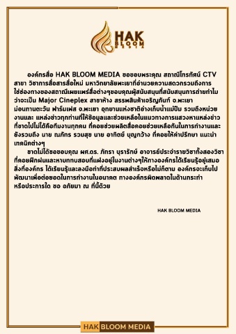 องคกรสื่อ HAK BLOOM MEDIA ขอขอบพระคุณ สถาณีโทรทัศน CTV