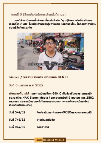 ตอนที่หาจะเปนการตั้งคำถามเกี่ยวกับหัวขอ “คุณรูสึกอยางไรเกี่ยวกับการ