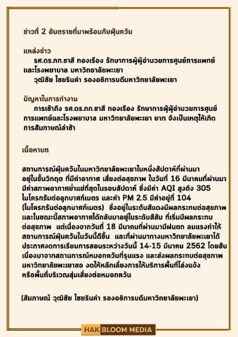 สถานการณฝุนควันในมหาวิทยาลัยพะเยาในหนึ่งสัปดาหที่ผานมา